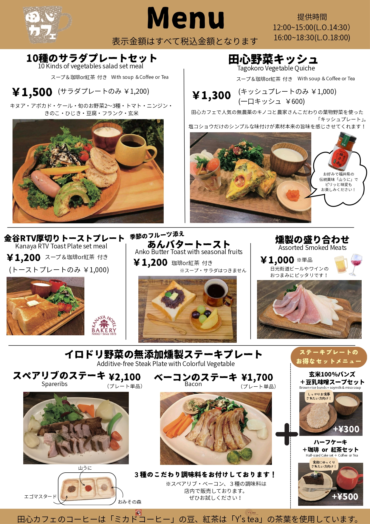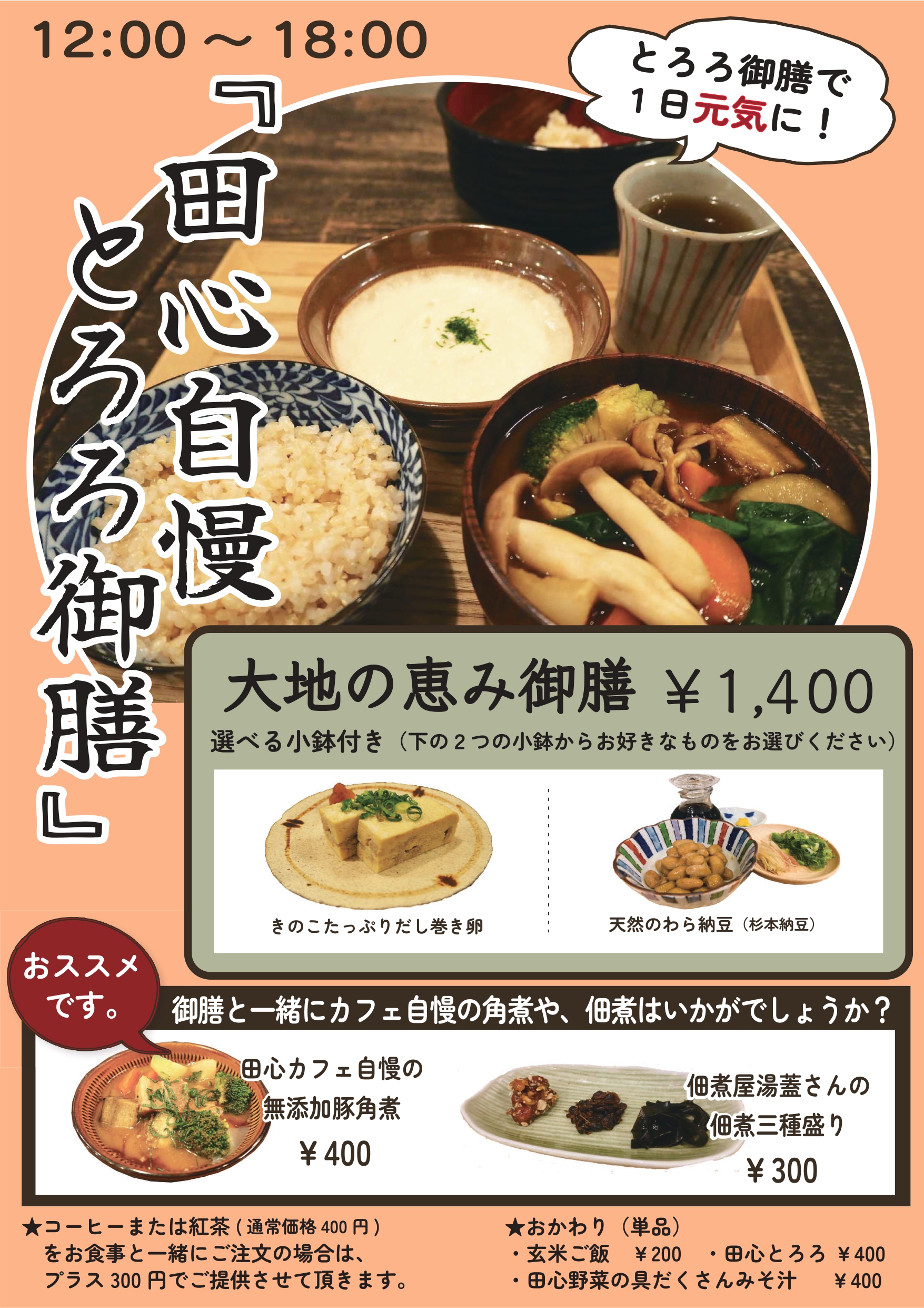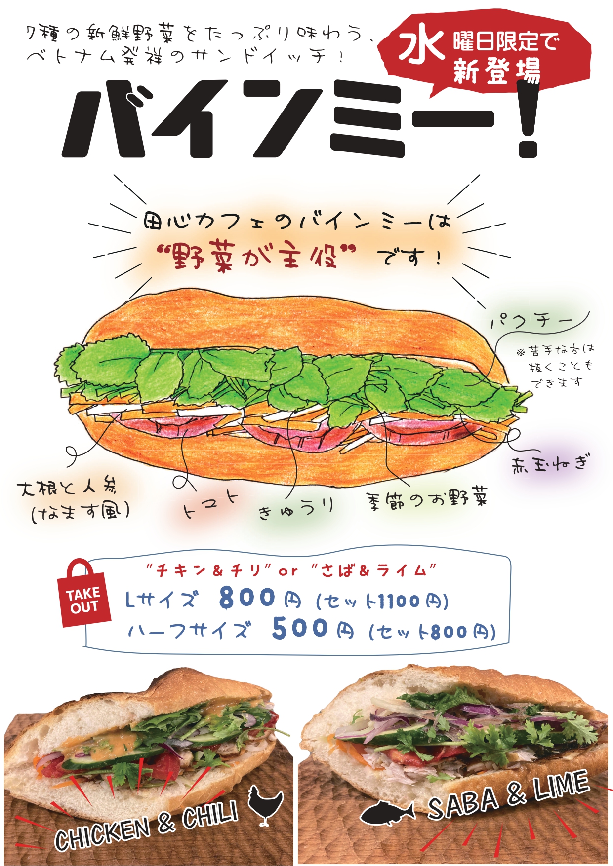 田心カフェ Menu hatarakuba 2026年1月12日 田心カフェ Menu2026-01-12T20:13:35+09:00 Tweet 田心カフェ Menu 曜日別メニューやおやさんの”田心カフェ”は、曜日ごとにお料理が変わります!野菜を使った心身にやさしい食事を提供しますまた、関東近郊でとれる、新鮮・安心・安全な“農薬不使用・減農薬野菜”も店頭で販売しています 水曜日 木曜日 金・土曜日 ドリンク・カフェメニュー 水曜日 木曜日 金・土曜日 ドリンク・カフェメニュー アクセス●住所:台東区西浅草3-3-4シャリオかっぱ橋1F📍東西めぐりん(西浅草三丁目)バス停前●電話番号:03-5827-8217(有限会社人事・労務内)●営業日 :毎週水曜日から土曜日●営業時間:12:00〜19:00※営業日が異なることがあります。最新情報は、903シティファームのInstagramをご確認ください。